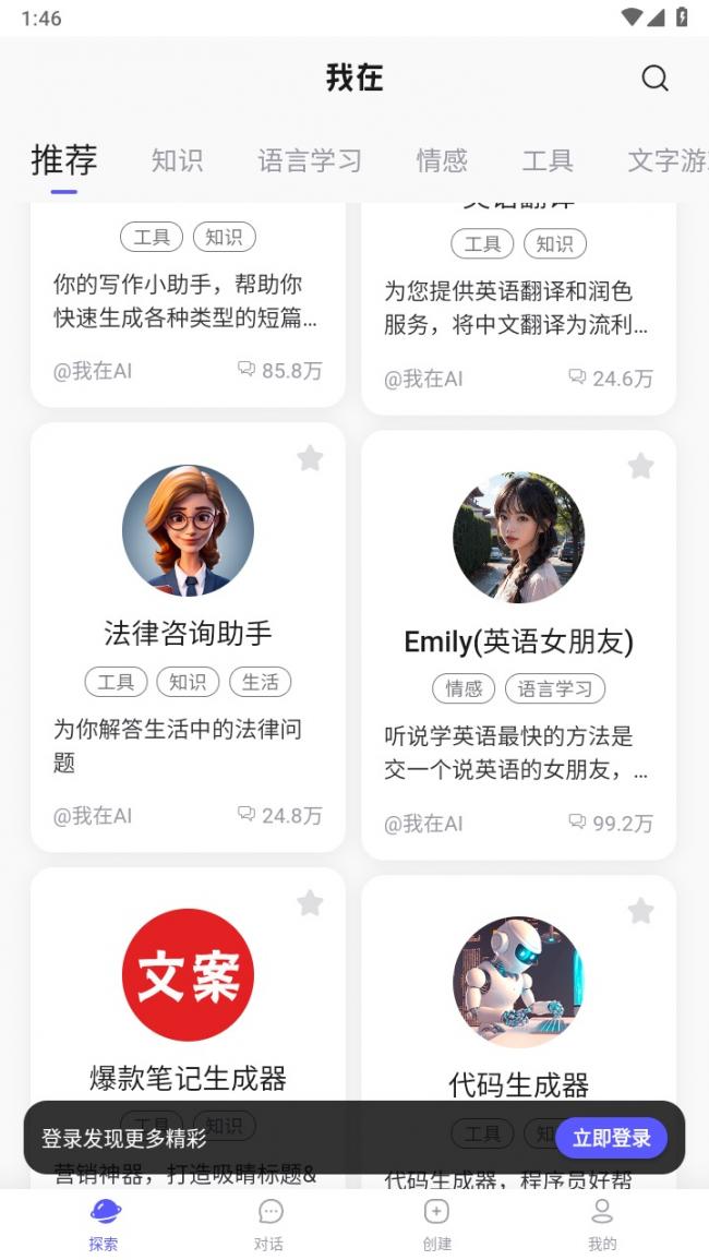 我在ai 官网下载是一款功能十分全面的ai助手,能够给你的生活带来极大的方便,软件集合了各种非常强大的AI工具,除了提供ai助手对话功能,还有各种经典ai工具等你使用!无论你是想要撰写文案还是周报生成这里都能够帮到你,软件能够给你提供更多的都灵感和解惑!