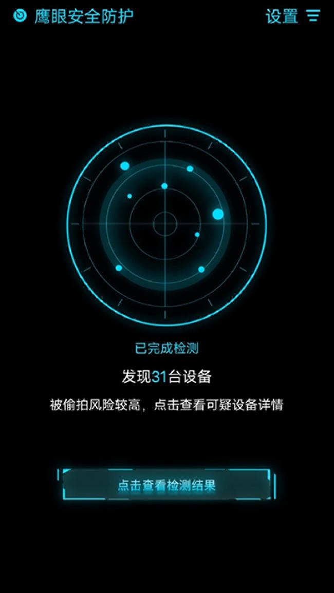 3、鹰眼防护下载app红点侦测:侦测到鹰眼侦测的内部,可以利用侦测的红侦测到侦测到暗藏的摄影机。多种防偷拍装置,可有效地保护个人信息不受外界干扰,是外出旅游、租房、住店等必备之物。