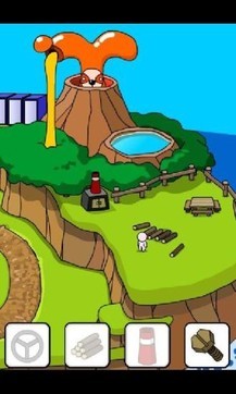 4,木头,螺丝,建好房子以后会出现另外一个小人,这个时候用锄头可以挖河获得一个长满花的草地,使用花将让小人相互喜欢,获得另外一个小人,但是接下来不管做什么都不会导致火山爆发,但是如果修路以前没有先挖通河流就会导致火山爆发,使得整个小岛沉默。