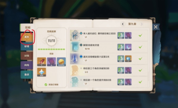 3、接着任务还没有完成,别急着划走。你需要打开冒险之证,选择第二栏进行委托.