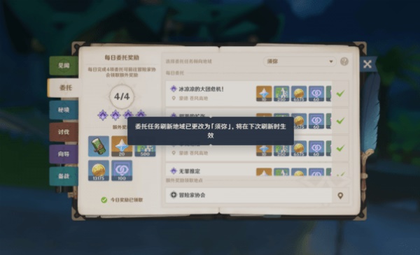 4、任务地点需要转换,第二天的凌晨4点来到须弥完成每日委托即可。简单来说,冒险就要大步向前任务完成之前,需要做一个小任务。那就是弥魔神任务,这样到来第二天即可自动触发。