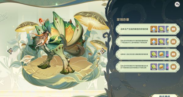 【在队伍中所有角色均不被翠翎恐蕈释放的不稳定孢子云命中的情况下将其击败】这个条件能够速杀即可,当孢子云出现的话要注意躲避,使用远程角色会容易一些。