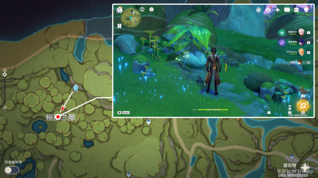 第一步传送到桓那兰那的七天神像,然后转向正后方,朝西南方行至图标位置,就可以看到「修梨薛那」(一个类似洋葱的玩意)