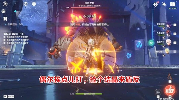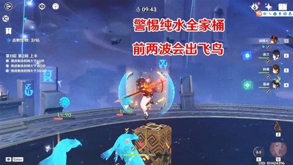 至于下半,怪好处理,主要是别忽视了隐藏在光污染下的光环效果,三个直伤光环:阴燃、火球、雷光矩阵。特别是带万叶的玩家,那大招一开,你都看不清路了,就差点被这个光环阴死,大家需要注意一下。
