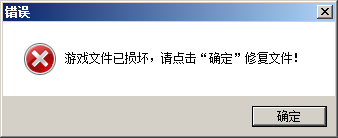 Q:安装完成启动游戏时提升:游戏文件已经损坏,请点击“确定”修复文件!但是弹出的一键修复按钮点击后无效并未开始修复。(如图)