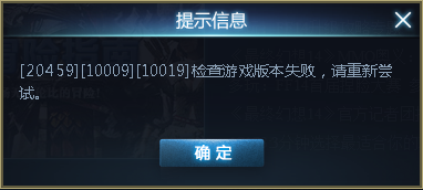 Q:打开游戏客户端,提示无法连接更新服务器,客户端提示“[20459][10009][10019]检查游戏版本失败,请重新尝试”(如图)