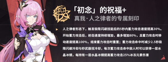 攻速乘区变相提升了总伤害,而冰镜(上限4层)能提供100%元素增伤。但想要吃满【初念】,利用上闪避后的5秒的攻速提升,以及武器与闪避的减CD效果,就需要中断蓄力,穿插武器与闪避。可见倾向【初念】,就要保持「闪蓄」。