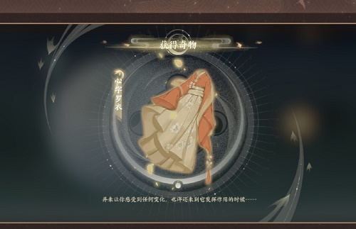 4、“合”:在第四层最后一个问卜点选第一个选项打开佩囊(在此之前至少有六个生效奇物)获得“心字罗衣”。