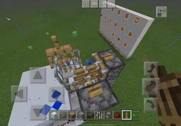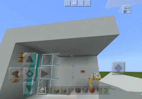 5、来到淋浴间的外面,放几个方块到墙壁上去。
