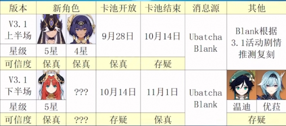 然后是BLANK根据3.1的主线剧情推测会复刻温迪和优菈,注意是推测,不是石锤。