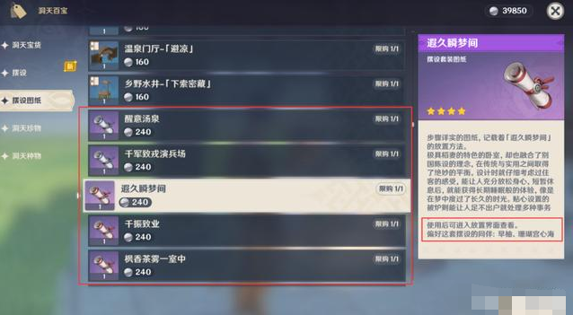 1.先到尘歌壶找阿圆对话,在摆设图纸选项处购买【摆设套装图纸】,然后打开背包使用图纸。