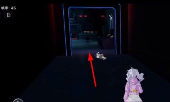 1、在领取任务以后我们从下图漆黑的房间,朝着箭头指的方向移动。