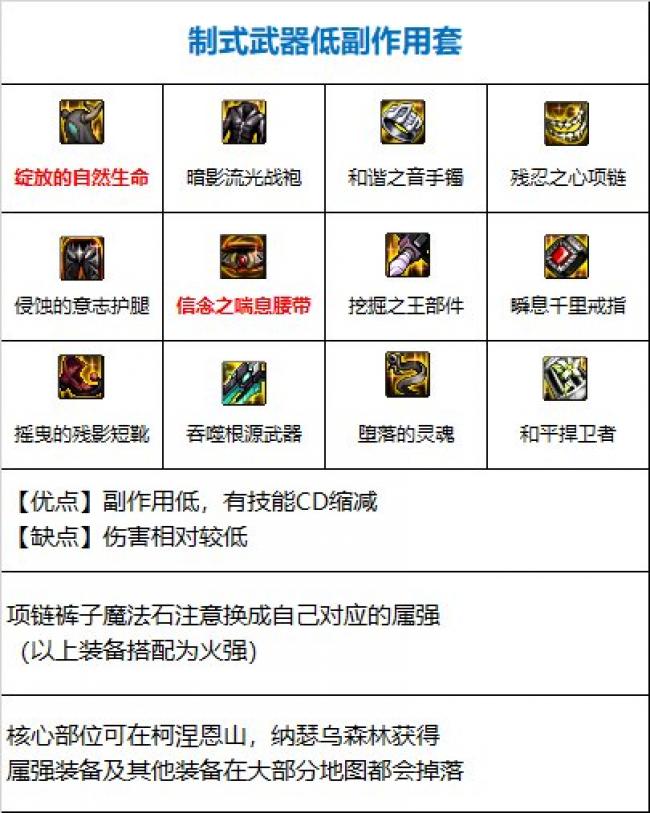 这套的伤害比较较高,但是费无色,暴击率及三速较低。