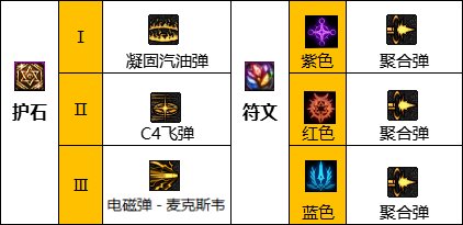 护石选择凝固汽油弹、C4飞弹、电磁弹,符文紫蓝红选择聚合弹