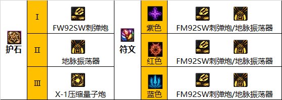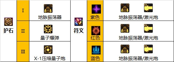护石选择地脉振荡器、量子爆弹、压缩量子炮,符文紫蓝红选择地脉振荡器或激光炮