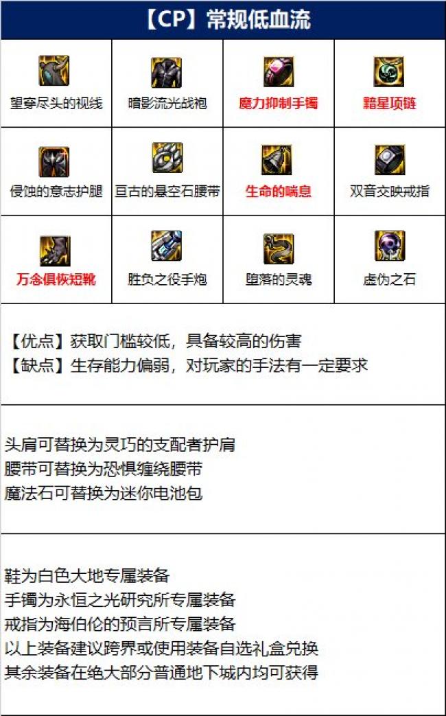 其余装备在绝大部分普通地下城内均可获得。