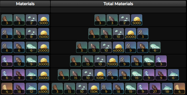 [凛风奔狼怀乡*④]、[幽邃刻像*18]、[史莱姆原浆*⑫]、[摩拉*4.5W];