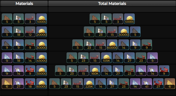 [谧林涓露金符*⑥]、[辉光棱晶*27]、[织金红绸*⑱]、[摩拉*6.5W]。