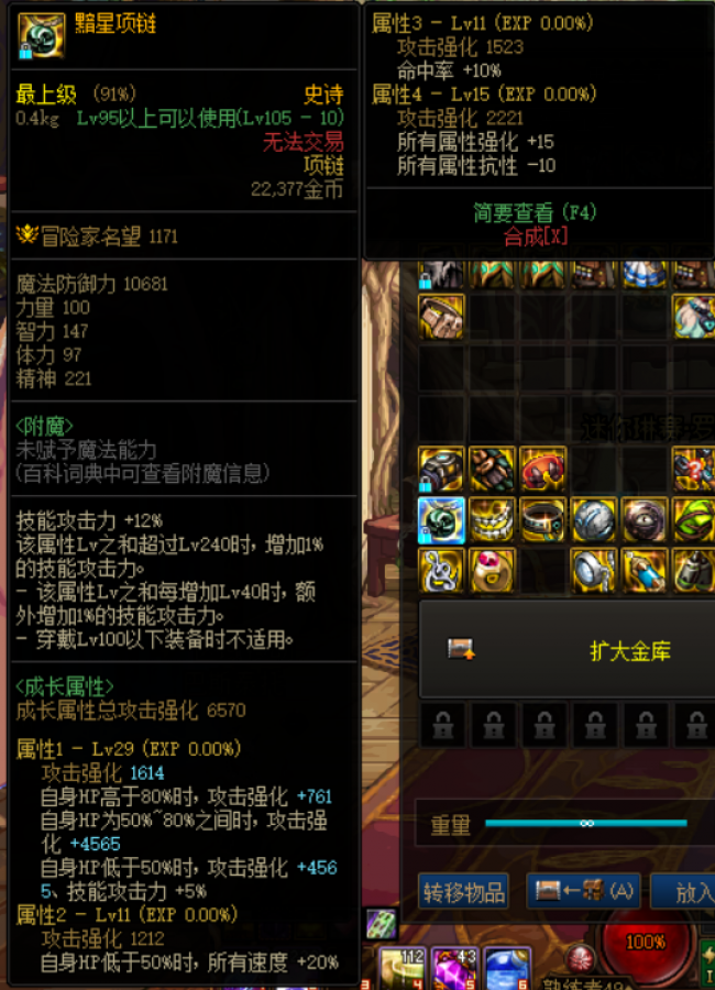 还有下面这件黯星项链,在血量低于50%后,效果发挥到极致,强化攻击,技能攻击和三速,也是核心散件之一