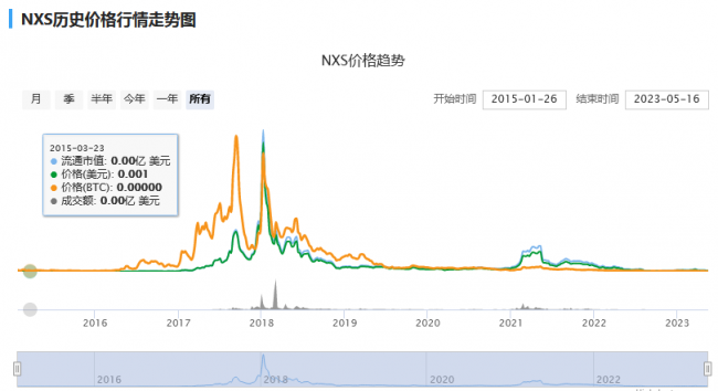 三维区块链一个等于多少人民币? nxs币历史价格走势图
